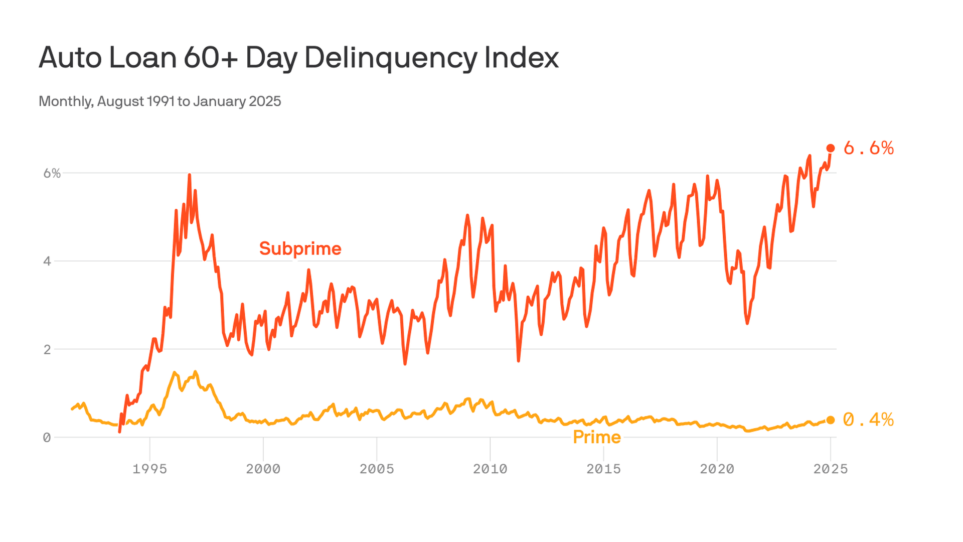 Auto-loan delinquencies remain elevated in 2025, with the worst strain among low-FICO borrowers.